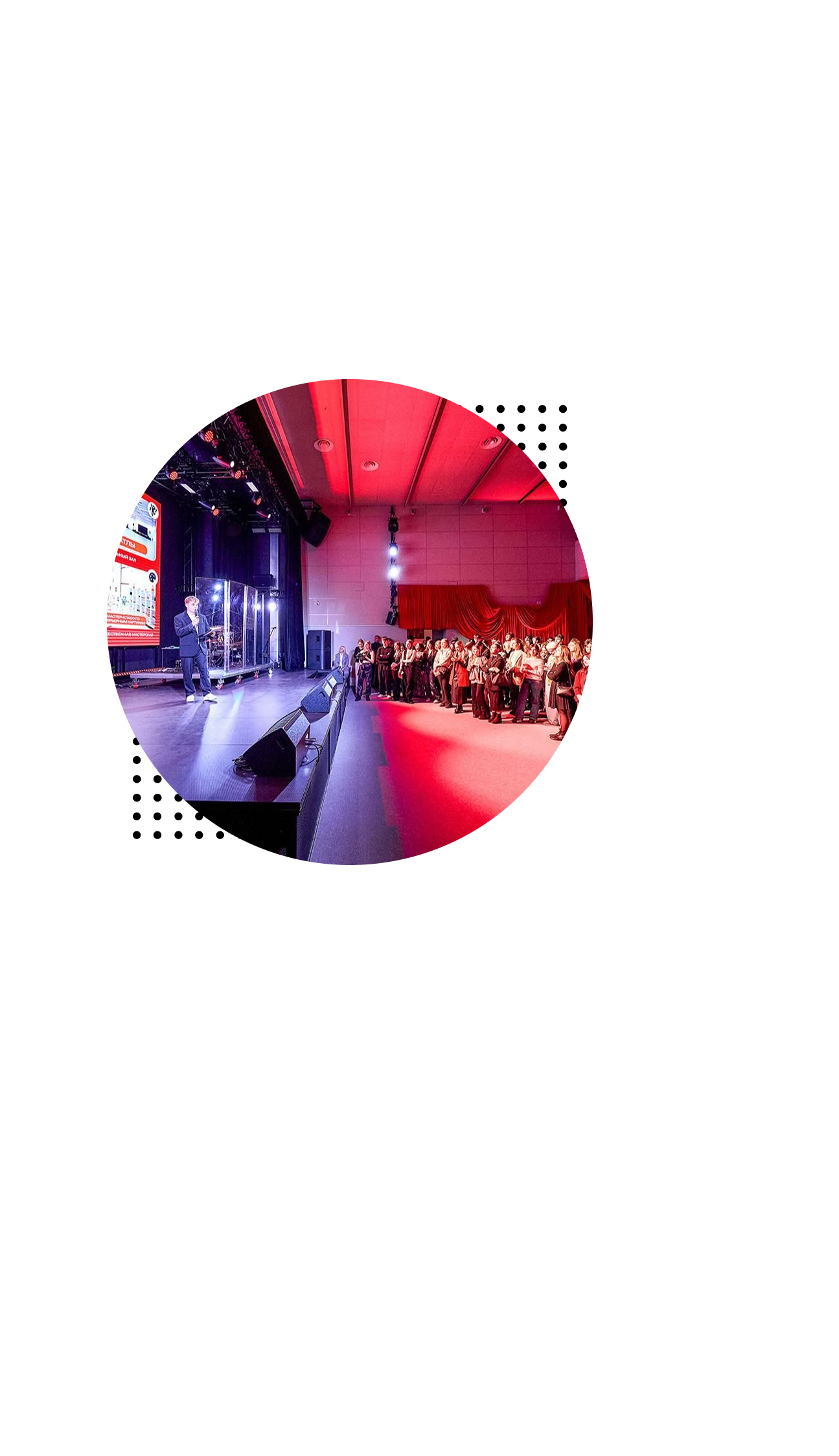 Здесь можно проводить мероприятия, собираться с единомышленниками, записывать видео, воплощать творческие идеи и репетировать