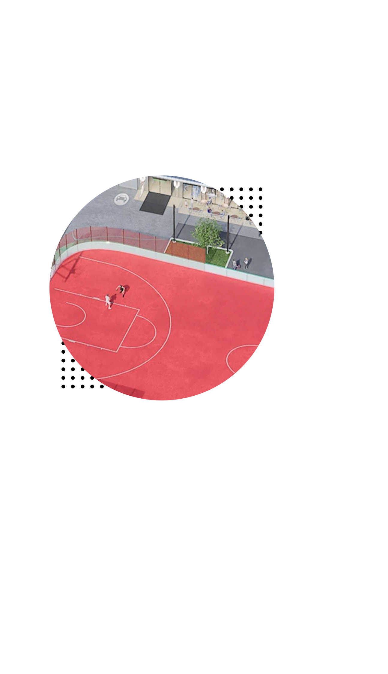— летом площадки смогут использовать для футбола, баскетбола или бадминтона,Для этого предусмотрены специальные закладные элементы для крепления стоек и ворот, а также профессиональное спортивное покрытие, обеспечивающее комфорт и безопасность в любую погоду.
